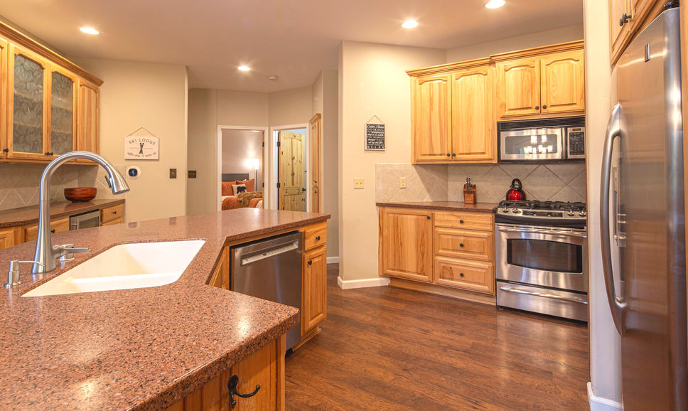 The fully stocked kitchen, with stainless steel appliances and ample counter space, makes meal prep a breeze—whether it’s a hearty breakfast before hitting the hiking trails or slopes, or a gourmet dinner to wrap up the day.